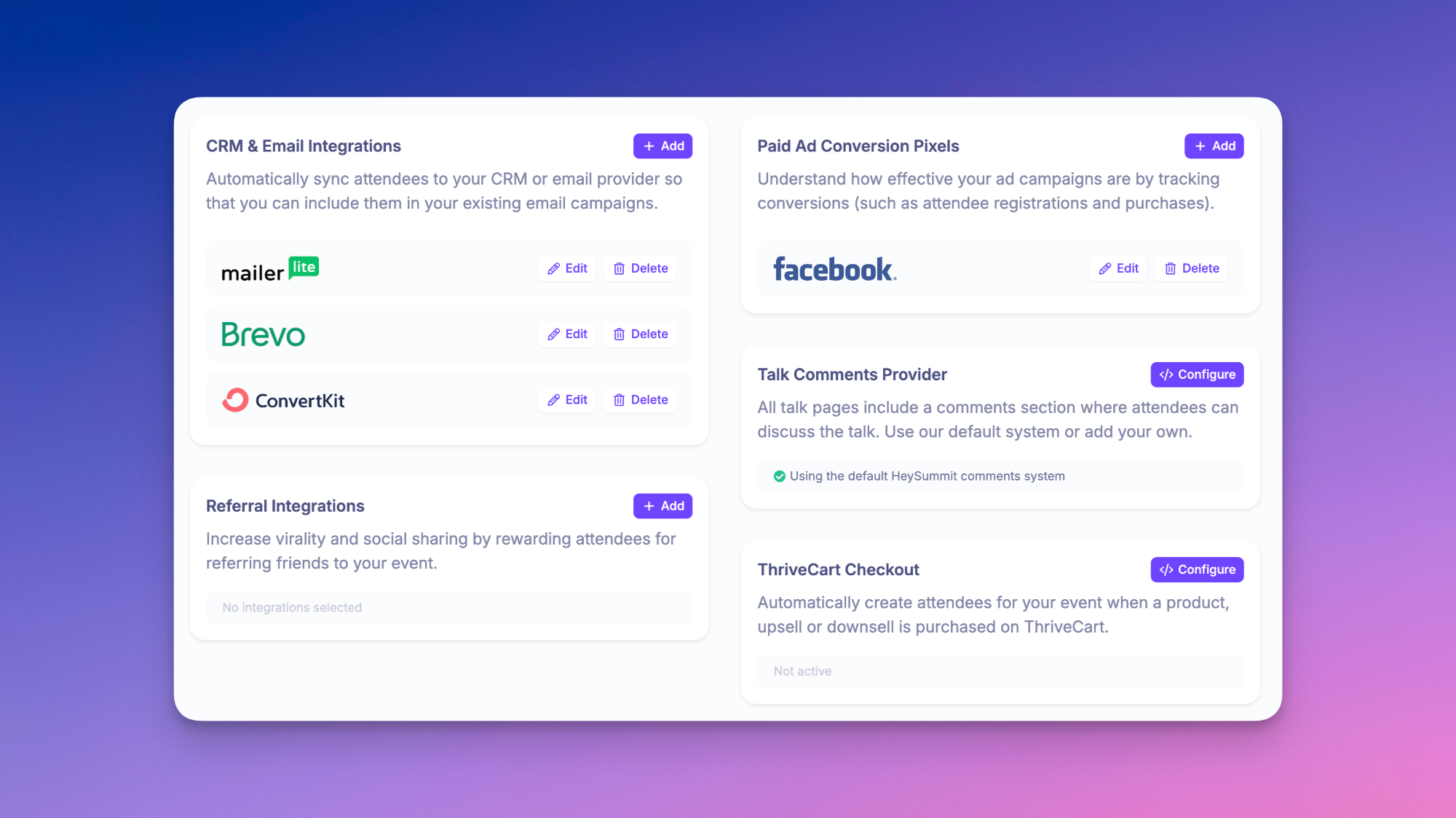 In our continuous effort to simplify your event management processes and enhance attendee engagement, we are excited to introduce a significant upgrade to our integrations capabilities. Understanding the challenges of syncing attendee data with your email or CRM provider, we've now streamlined this process, moving beyond the need for manual CSV imports/exports, reliance on our Zapier integration, or custom API coding.