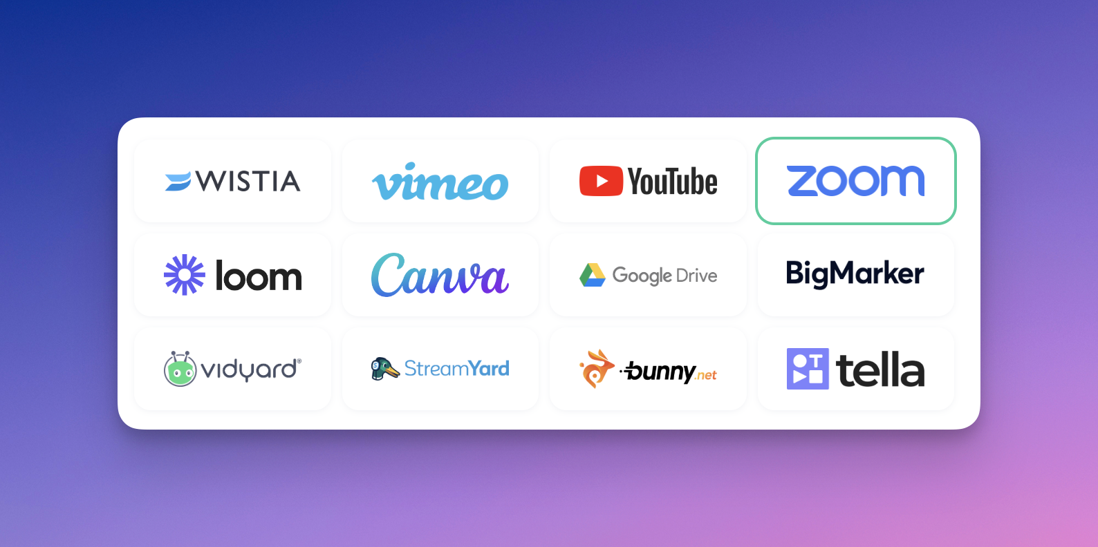 Seamless Zoom Integration – Add your Zoom recording ID, and we’ll take care of the embedding. No need for third-party hosting.
