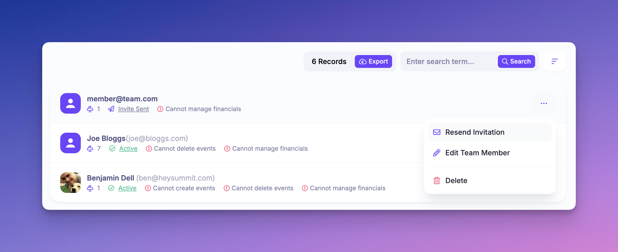 Granular Permissions System: You can now define specific permissions for each team member, including the ability to restrict access to financial data. This allows you to assign roles like a Virtual Assistant for event setup without granting visibility into revenue or financial performance.