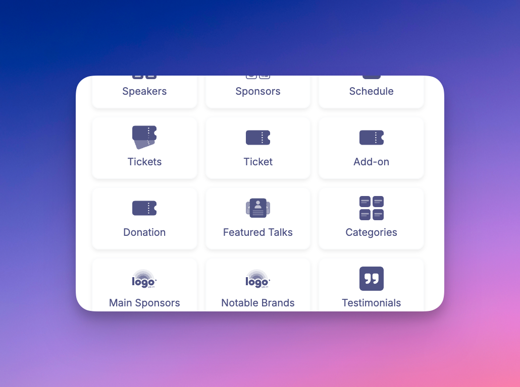 We’ve added a new Categories Grid component to the page builder editor! This makes it easier than ever to showcase a structured view of your event’s categories, helping attendees quickly understand the topics covered and navigate directly to relevant talks.