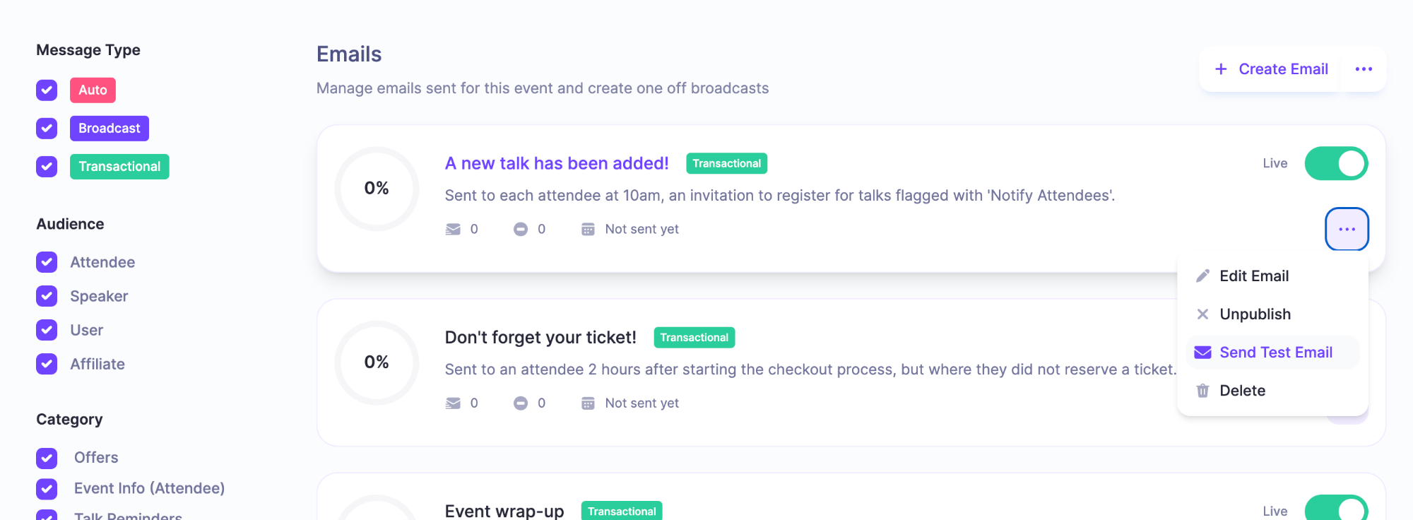 We are excited to announce a brand new update to the HeySummit platform - a completely redesigned email management system. This update includes a number of new features and improvements, including: