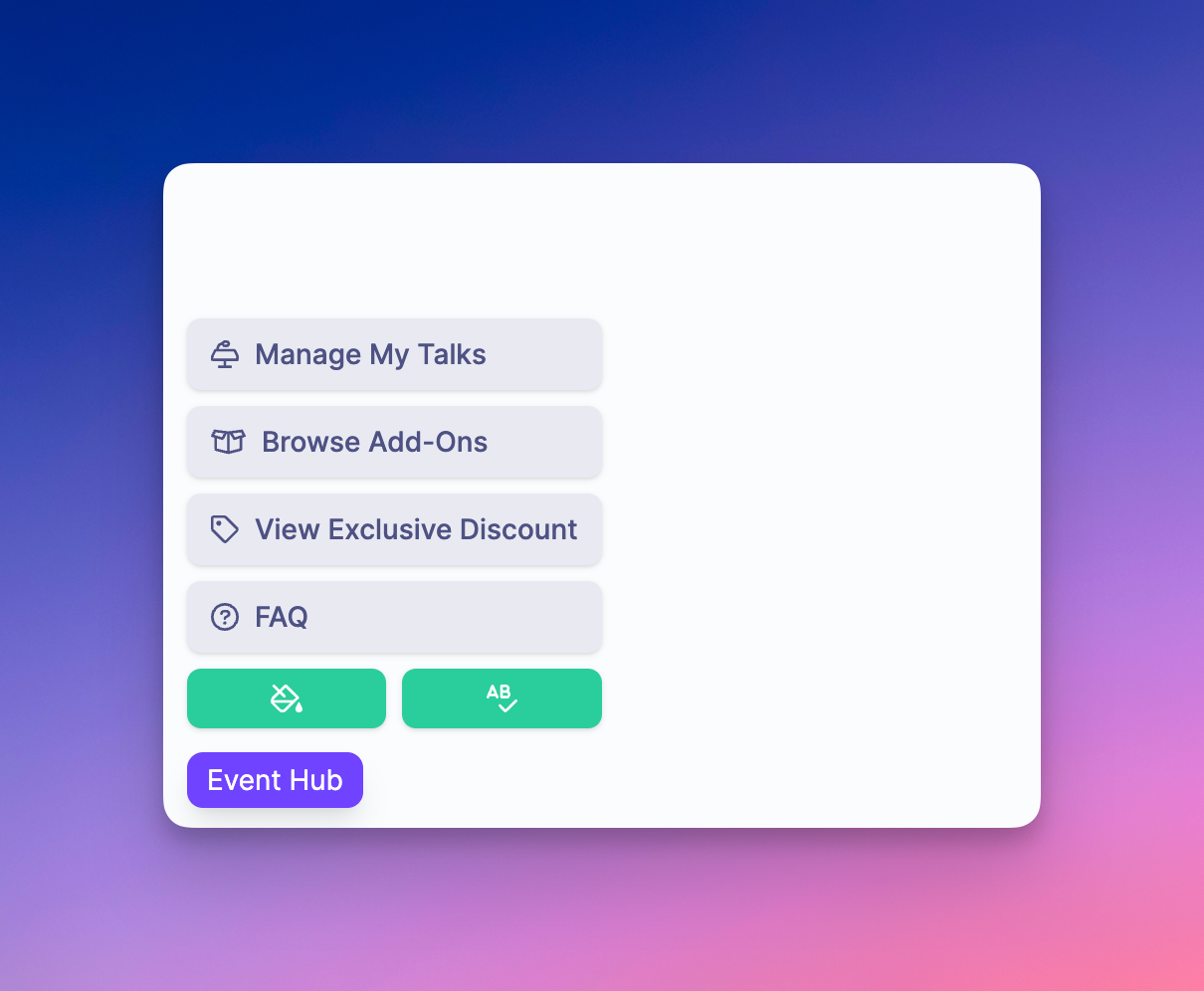 When browsing the front-end of your event, we used to have a toolbar that would sit in the bottom left of the screen. This toolbar would provide you (as the event organiser) with quick links to edit the page, update the theme or enter content edit mode. In addition to these editing controls, we also used this toolbar to show key buttons to attendees (when logged in), such as a link to update their schedule, view FAQs and exclusive coupon offers if available.