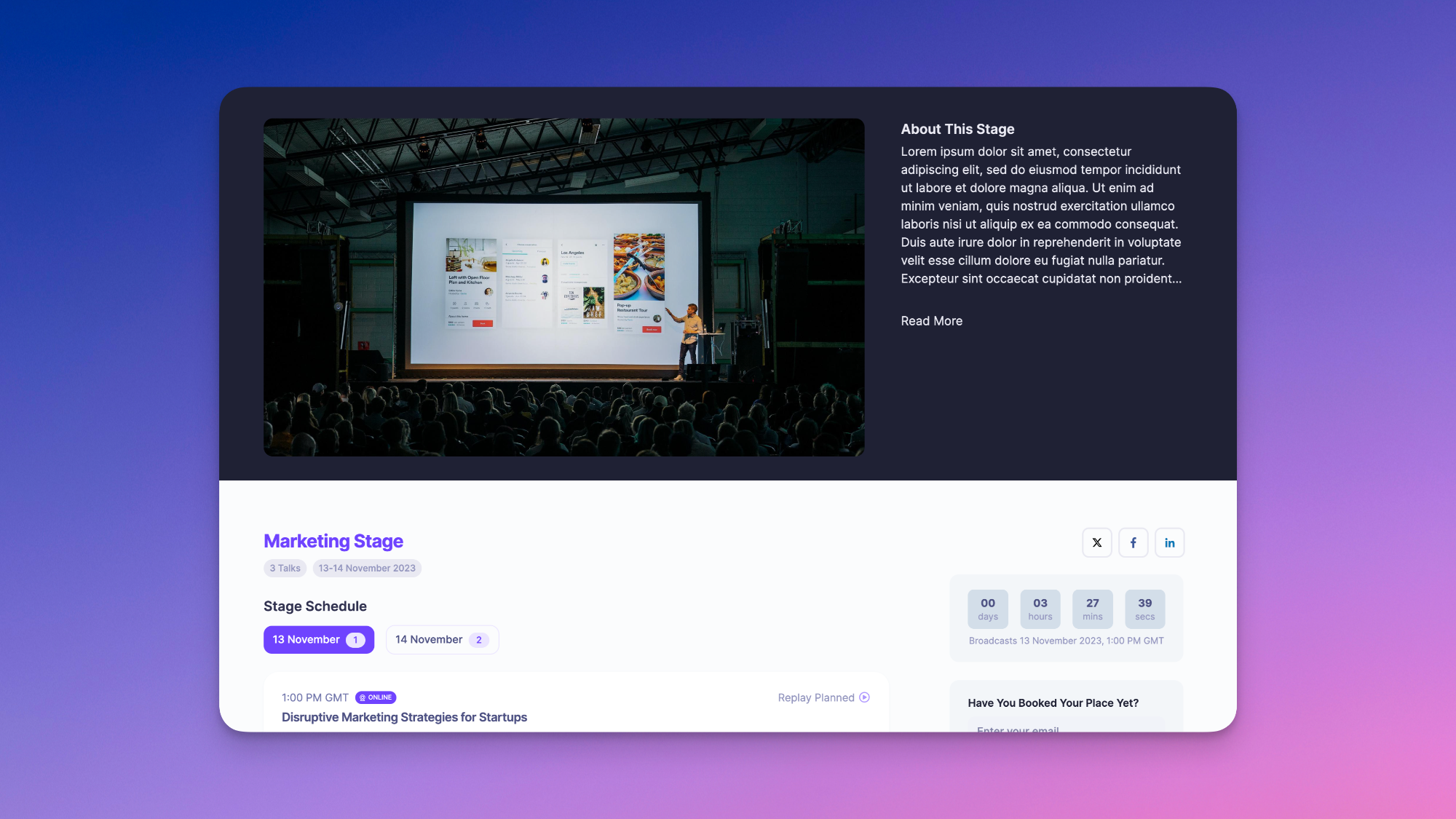 Scheduled Talks Display: The schedule of talks for each stage is now displayed, grouped by date, for easier navigation and planning.