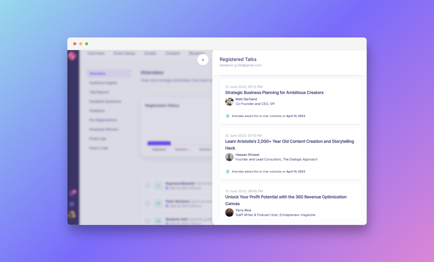 We've added a new report to help you see exactly which talks an attendee has registered for.